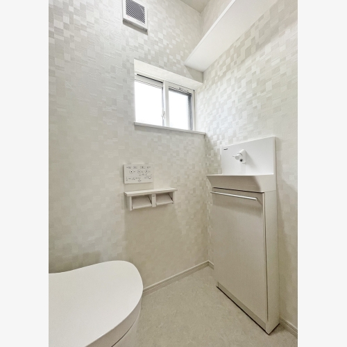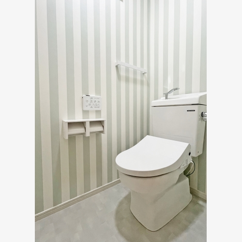 家族が増えて、もう1カ所トイレがあれば・・・とご希望がありました。 増築しないでトイレを増やす方法を考えたところ、広い玄関に目をつけ、そのスペースを使ってサブトイレを計画。メインのトイレは片開き戸、全自動トイレで日々快適に。サブトイレはシンプルにローコストで仕上げました。
