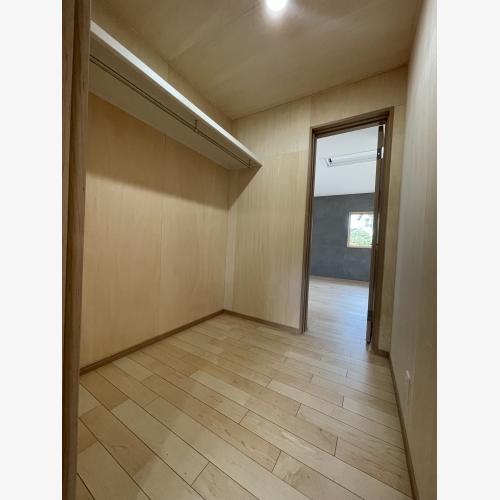 元客間スペースを寝室にリノベーション。リビング~DKから繋がるウォークスルークローゼットからも出入りできる(収納をご覧ください) 電灯式の天井埋込室内干しユニットを取り付け、外に干せない時や、さっと取り込んだ時の一時掛けにも便利。