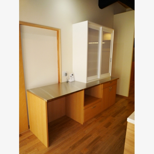 ■蔵で保管されていた古い桜の木を製材し直し、玄関正面の飾り棚として造作。