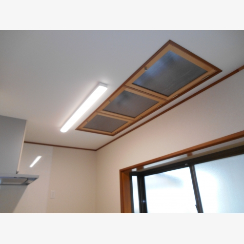例えばキッチンの天窓や出窓、ダイニングの天井が一部上がっているセンタリングなどです。