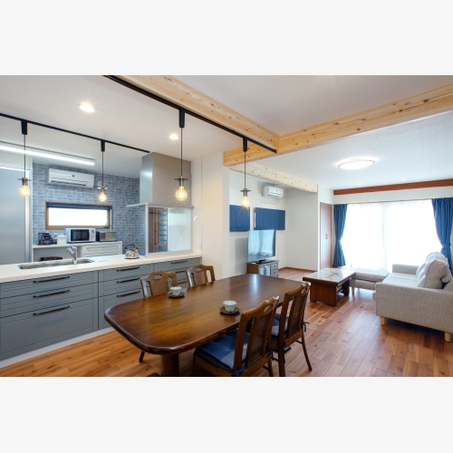 応接間と二間続きの和室、広く暗い廊下を取り込んで、LDKをプラン。普段は4人だが、娘さん夫婦やお孫さんが来た時は大人数になるのでダイニングを広くとり、リビングは和室と繋げて、更に広く使えるようにしました。