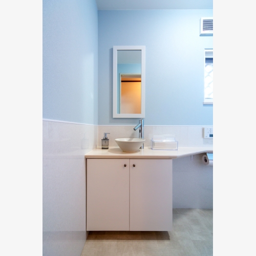 コロナ禍、特にその思いが強くなりました。リフォーム後のトイレはすっかり明るくなって、私の好きな明るいブルーの空間になってスッキリした印象になりました。しっかり手も洗え、臭いも気にならなくなって、花を飾ったりして、毎日の癒しの空間になっています。トイレ掃除もこまめにするようになったかも!