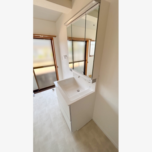また、洗面脱衣と洗濯室も直接行き来できない間取りになっていましたが、間仕切壁を取っ