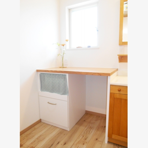 造り付け家具や作りつけのテーブルも狭い空間を快適に暮らすアイテムとして活躍してくれると思っています。