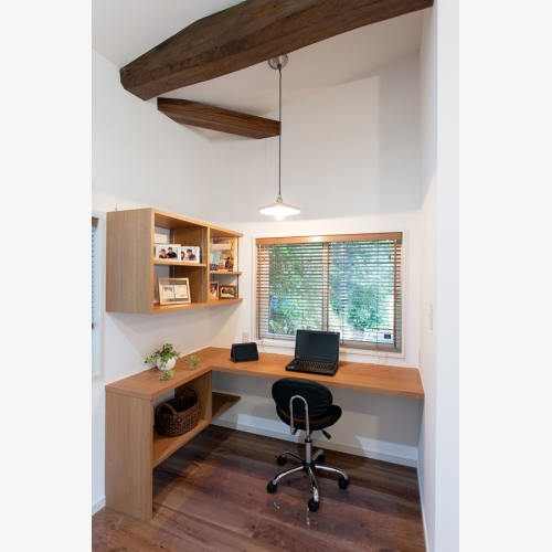 ■書斎スペースにはご要望を踏まえ、デスクを造り付けた。