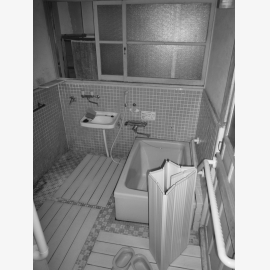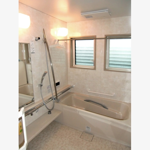とても寒く感じておられた浴室は、ユニットバスを採用し、また、部屋から直接出入りできるよう配置。 ヒートショックの軽減と、家事動線をよくした。 浴室には暖房をつけて、暖かくできるので、もう寒くありません。