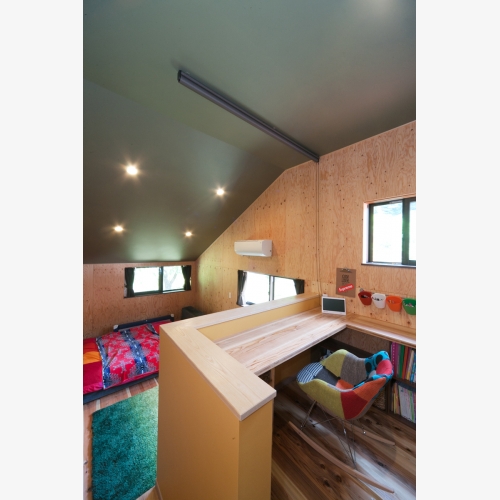 て使えるようプラン。仕上げ材は造り込まず合板で仕上げ、自分達で好きなようにカスタマイ