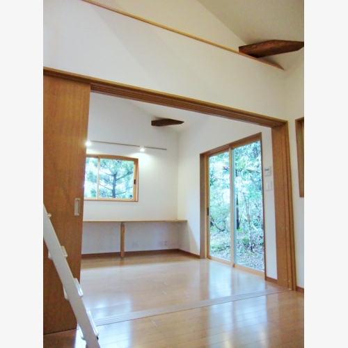 ◎面積的に個室の寝室ももうひとつ取ることは難しく、空間を小屋裏も利用したロフトをつく
