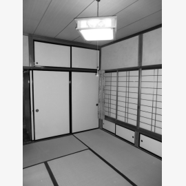 離れは普段物置のように使われており、カーペット敷きの洋間は床組みじたいが痛んできていた。和室は昼間でも電気をつけなければ暗かった。また、断熱も施されておらず、冬場は足元から冷えてしまう部屋だった。
