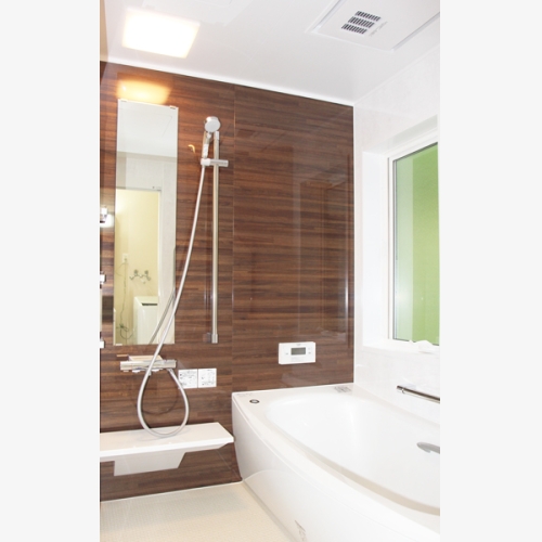 お風呂は一坪サイズのシステムバスがご希望でしたが、外壁が真っ直ぐではなく、屋根の取り合いなどから元キッチンの場所へ配置することに。