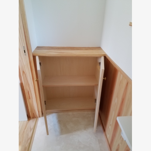 もともとは脱衣だったスペース。リフォーム後は収納スペースに。