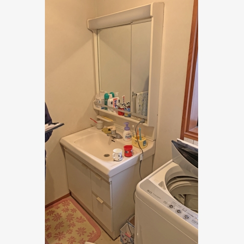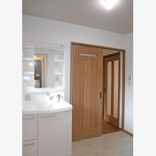 用途が不明なホールは洗面脱衣室とし、椅子や暖房機を置いても歩行がスムーズなよう広めに取りました。